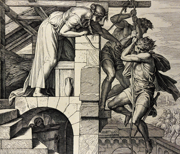 Rahab the harlot? It may be a surprise to some readers, but Biblical prostitutes were commonly mentioned in the text. What was the profession of Rahab in the Bible? Here, she assists Israelite spies down what may be a casemate wall, within which her home may have been located. Engraving by Julius Schnorr von Carolsfeld, Germany, 1860. Image: CCI/The Art Archive at Art Resource, NY.