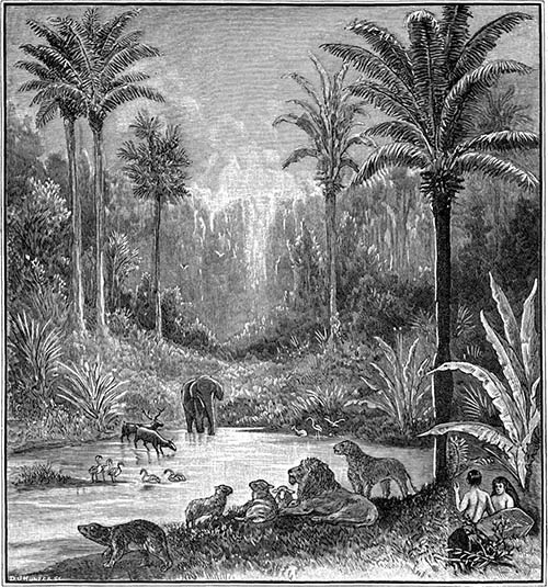“Be Fruitful and Multiply.” This illustration shows Adam and Eve in the Garden of Eden, where God gave them the command to “be fruitful and multiply” (Genesis 1:28). Photo: From Charles Foster, The Story of the Bible (1897).