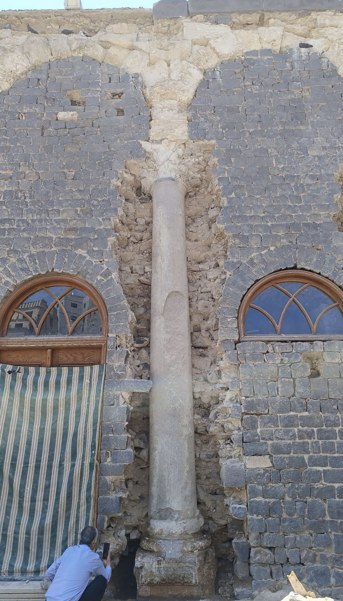 Roman-period column with inscribed base found during renovation of the Great Mosque of al-Nuri in Homs, Syria. Courtesy Maamoun Saleh Abdulkarim.