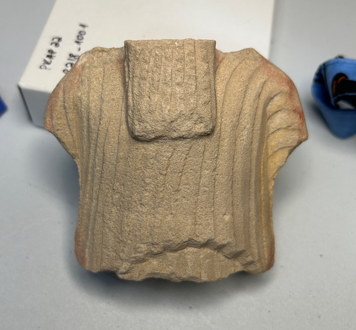 Another object I particularly enjoyed drawing was a fragmentary torso of a man, dubbed the “Eastern Figurine” by PKAP due to the figure’s long, textured beard, reminiscent of styles popular in the ancient Near East. The figure was carved from the warm-toned, finely grained limestone commonly used for carving in Cyprus.