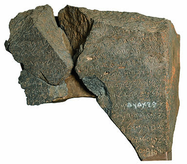 The fragmentary Tel Dan stela, containing the Tel Dan inscription (or “House of David” inscription) provided the first historical evidence of King David from the Bible. The Aramean king who erected the stela in the mid-eighth century B.C. claims to have defeated the “king of Israel” and the “king of the House of David.” Photo: The Israel Museum, Jerusalem/Israel Antiquities Authority (photograph by Meidad Suchowolski).