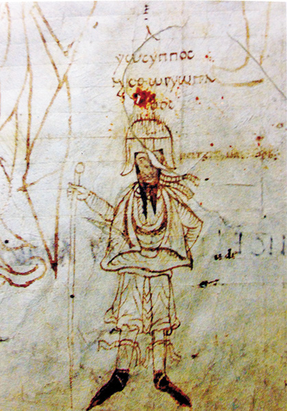 Jewish historian Josephus is pictured in the ninth-century medieval manuscript Burgerbibliothek Bern Codex under the Greek caption “Josippos Historiographer.” Photo: Burgerbibliothek Bern Cod. 50, f.2r.