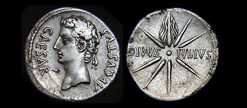 COMET COIN. This silver denarius (19–18 B.C.E.) features Caesar Augustus on one side and a comet with the words “Diuus Iulius” (Divine Julius) on the other. Photo: Courtesy of Don Yeomans.